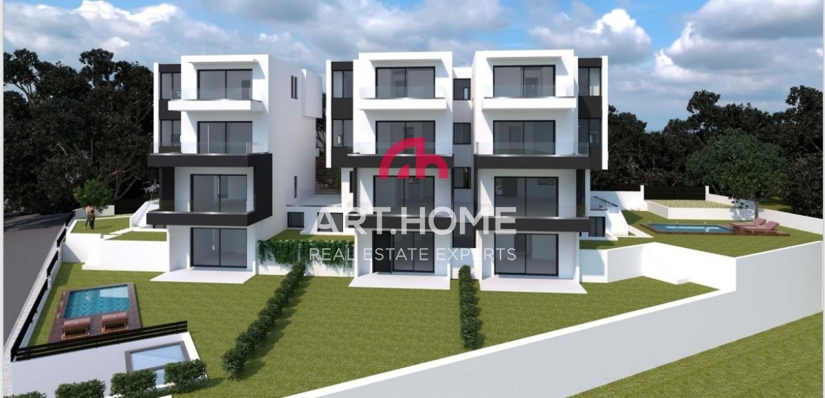 Luxury under-construction maisonette in Panorama with private garden, pool, and panoramic city views.